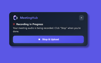 MeetingHub Recorder är en gratis webbläsartillägg som gör det möjligt att spela in ljud från möten på Google Meet, Zoom och Microsoft Teams. Med ett enkelt klick kan användare aktivera inspelningen direkt från webbläsaren, vilket gör det smidigt att fånga viktiga diskussioner utan att behöva använda externa verktyg. Inspelningarna laddas automatiskt upp till MeetingHub, där de blir föremål för AI-driven transkribering och sammanfattning.